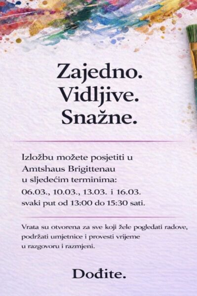 U bečkom Amtshaus Brigittenau otvorena je izložba koja je već na samom početku pokazala koliko snažna može biti umjetnost kada se spoje energija, autentičnost i zajedništvo žena.